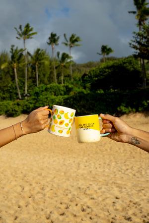 MEET OUR NEWEST MUG: THE WAVY MUG! BRING FEEL-GOOD ENERGY TO YOUR MORNING ROUTINE WITH THE REMINDER, “YOU ARE GIVEN ONE SUNRISE A DAY.”